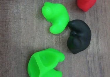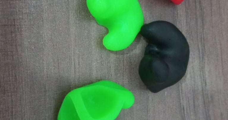 Confeccionado em silicone, utilizado para impedir a entrada de água no ouvido do usuário.